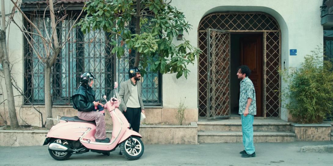 Bahram ist ein weltweit gefeierter Regisseur, doch in seiner Heimat, dem Iran, darf er seinen neusten Film nicht zeigen. Daher sucht er nach Wegen, der staatlichen Enge zu entkommen. Mit Partnerin und Produzentin Sadaf fährt er auf einer rosaroten Vespa quer durch Teheran, auf der Suche nach einem Ort für eine illegale Vorführung. Am Ende landen sie bei einer wohlhabenden Tierschützerin, in deren Wohnzimmer die Projektion stattfinden soll. Er wähnt sich schon am Ziel, doch der Staat schaut mit. Eine bissige, mit subtilem Humor gespickte Satire von Ali Asgari.